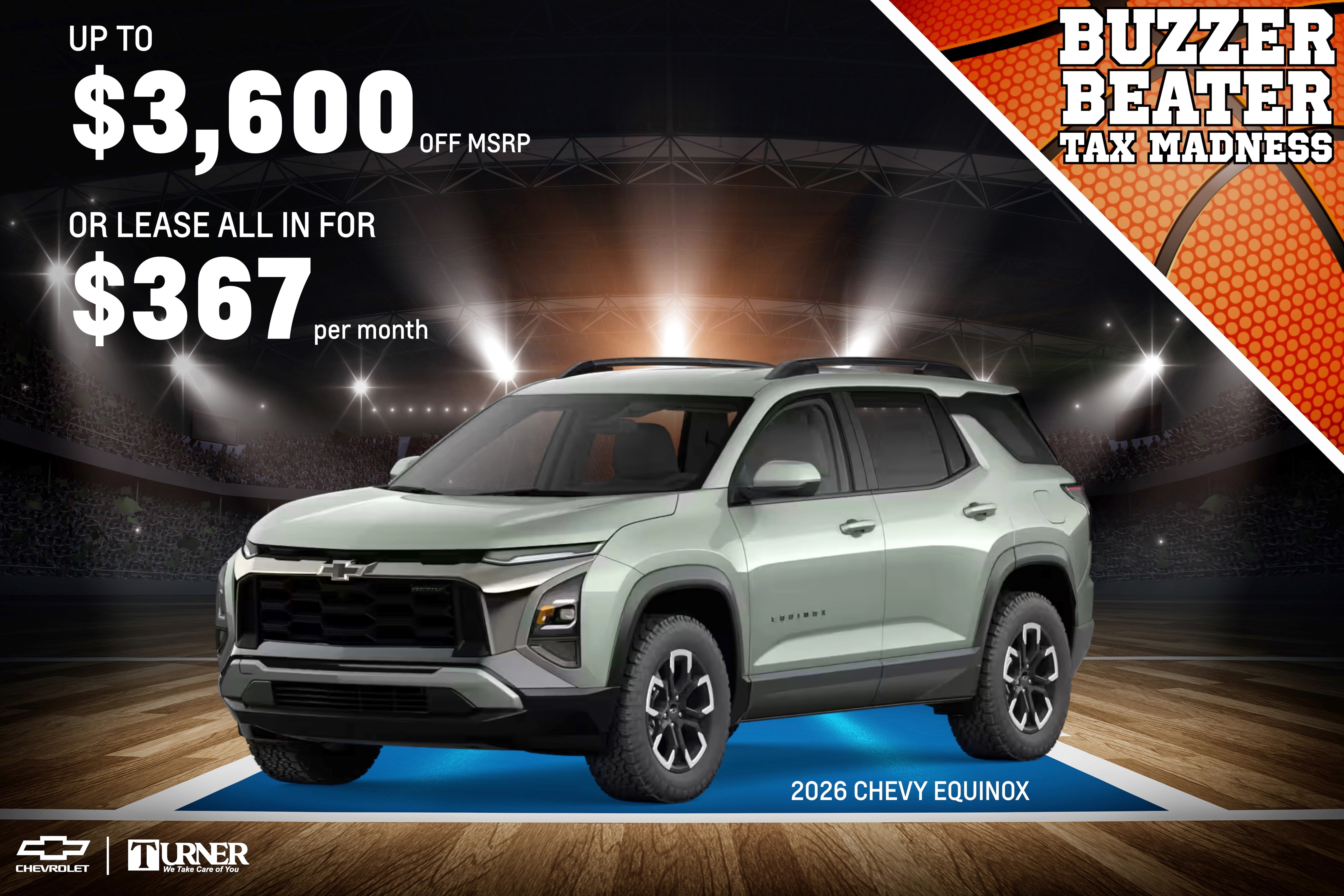 Disclosure- $367 lease offer is 36 months with 10,000 miles per year for well-qualified current lessees. Example vin: 3GNAXHEG4TL356602. Must be approved through GM Financial. Tax, title, license, and dealer fees are included. Only your first payment is due at signing. Some customers may not qualify. Must take new retail delivery by 3/31/26.